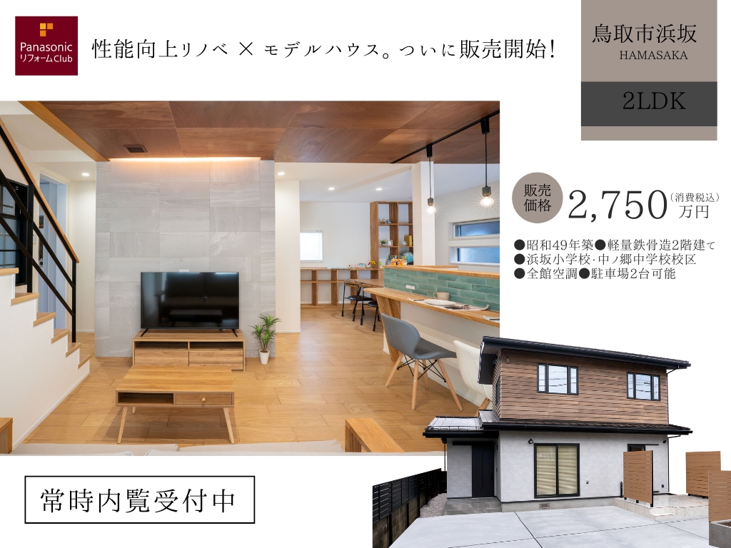 鳥取市浜坂に昭和49年築の中古住宅を性能向上リノベーションし、モデルハウスとして常時見学会を開催しておりましたが、ついに販売開始いたしました! 水廻りやクロスなど設備や内装を一新。 全館空調を採用。 新築より賢く、快適に。 あなたも「中古+リノベ」の選択をしてみませんか?
