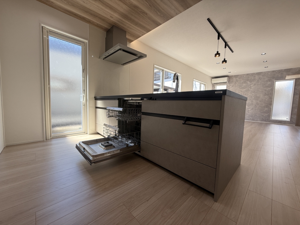 フロントオープン食洗機や広々とした回遊動線が、日々の暮らしを快適にサポートしてくれます。