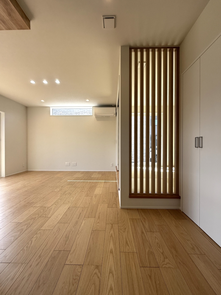 グレーと木の質感が映える、和室がつながる回遊LDKの家